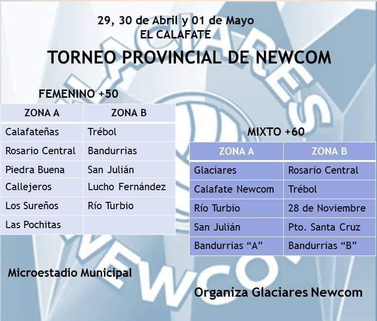 Este domingo terminó el campeonato provincial de Newcom que organizó Los Glaciares de El Calafate en las categorías +50 femenina y +60 mixto, donde hubo equipos de distintas ciudades de la provincia jugando en el Estadio Polideportivo Municipal.